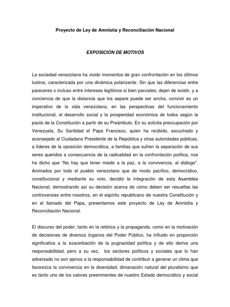 Proyecto de Ley de Amnista y Reconciliacin Nacional