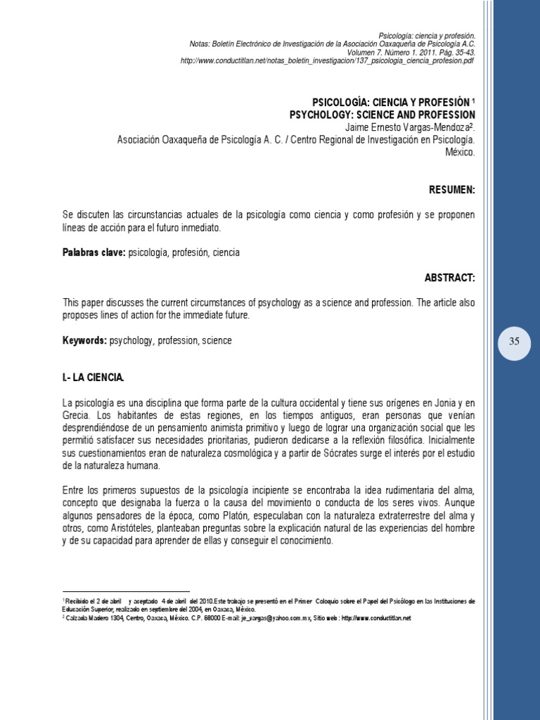 Se discuten las circunstancias actuales de la psicologa como ciencia y como profesin y se proponen