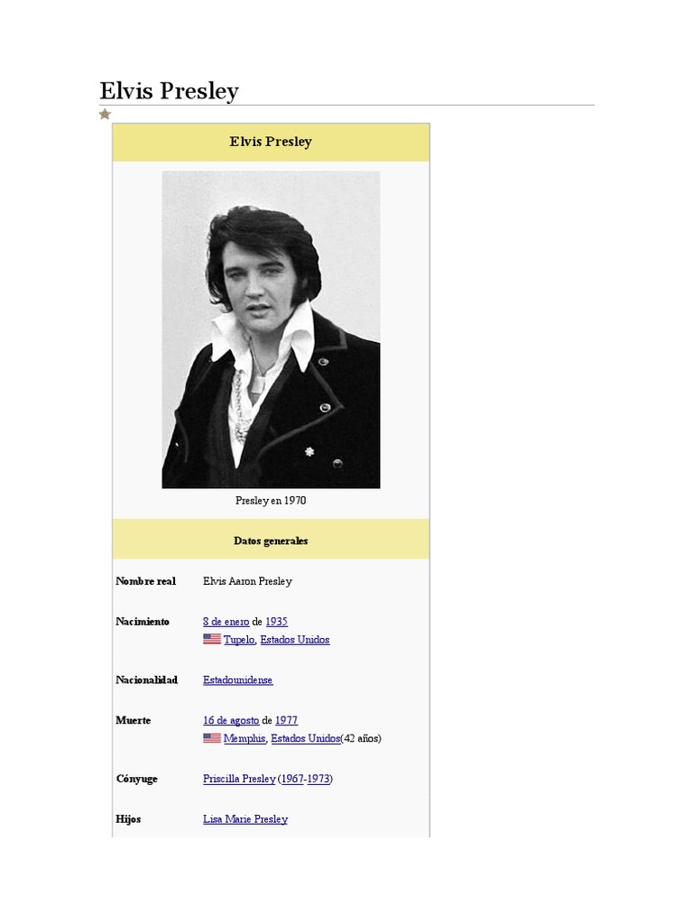 Elvis Presley naci el 8 de enero de 1935 en Tupelo, Mississipi. Sus padres eran Vernon