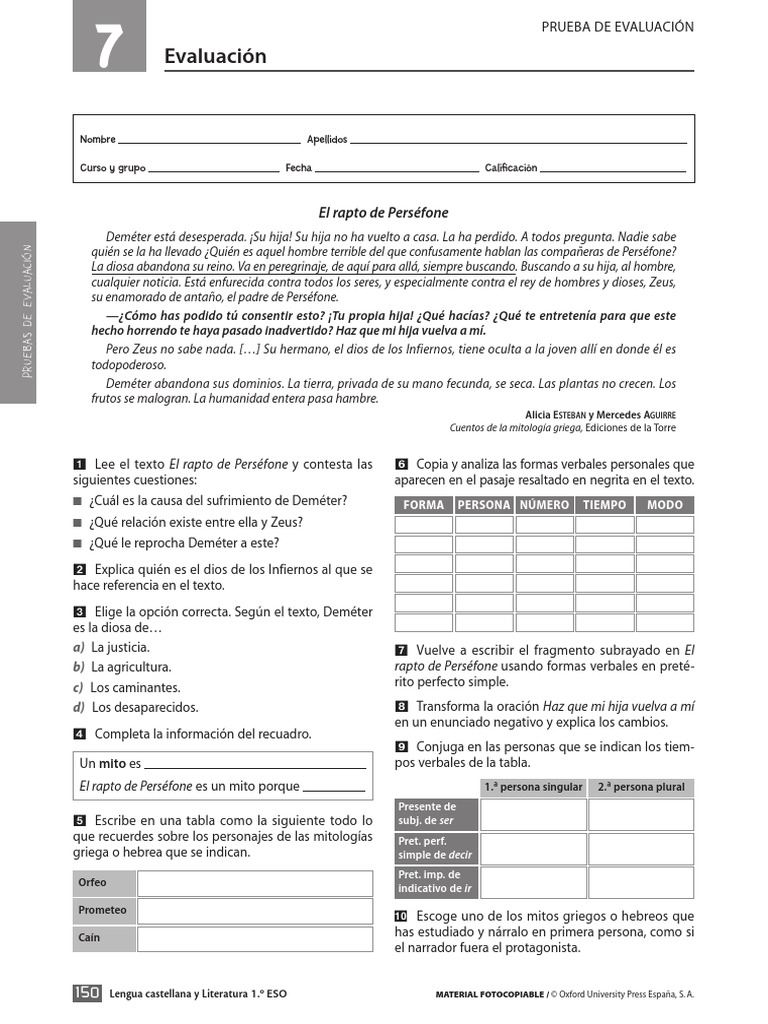 Lee el texto El rapto de Persfone y contesta las