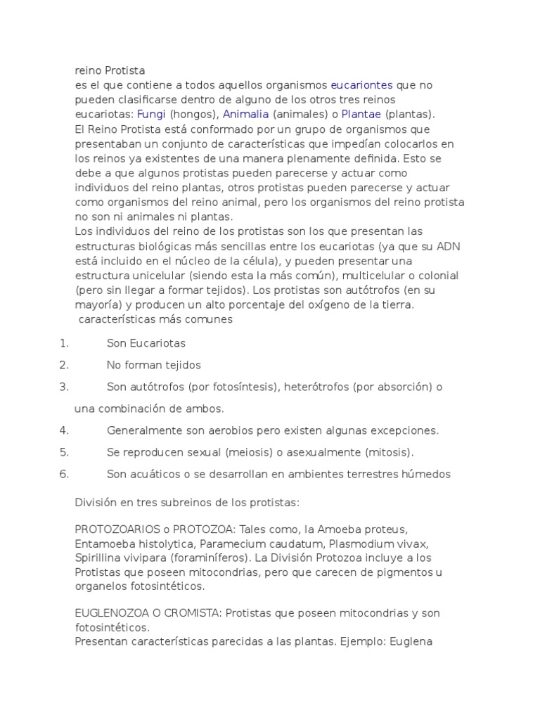 El reino protista est bsicamente formado y dividido en dos grupos: las