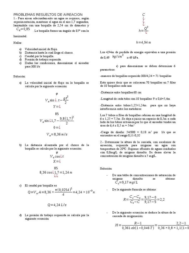 Dadas las condiciones, dimensionar el aireador