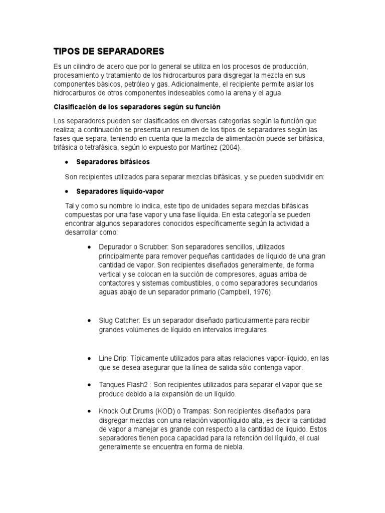 realiza; a continuacin se presenta un resumen de los tipos de separadores segn las