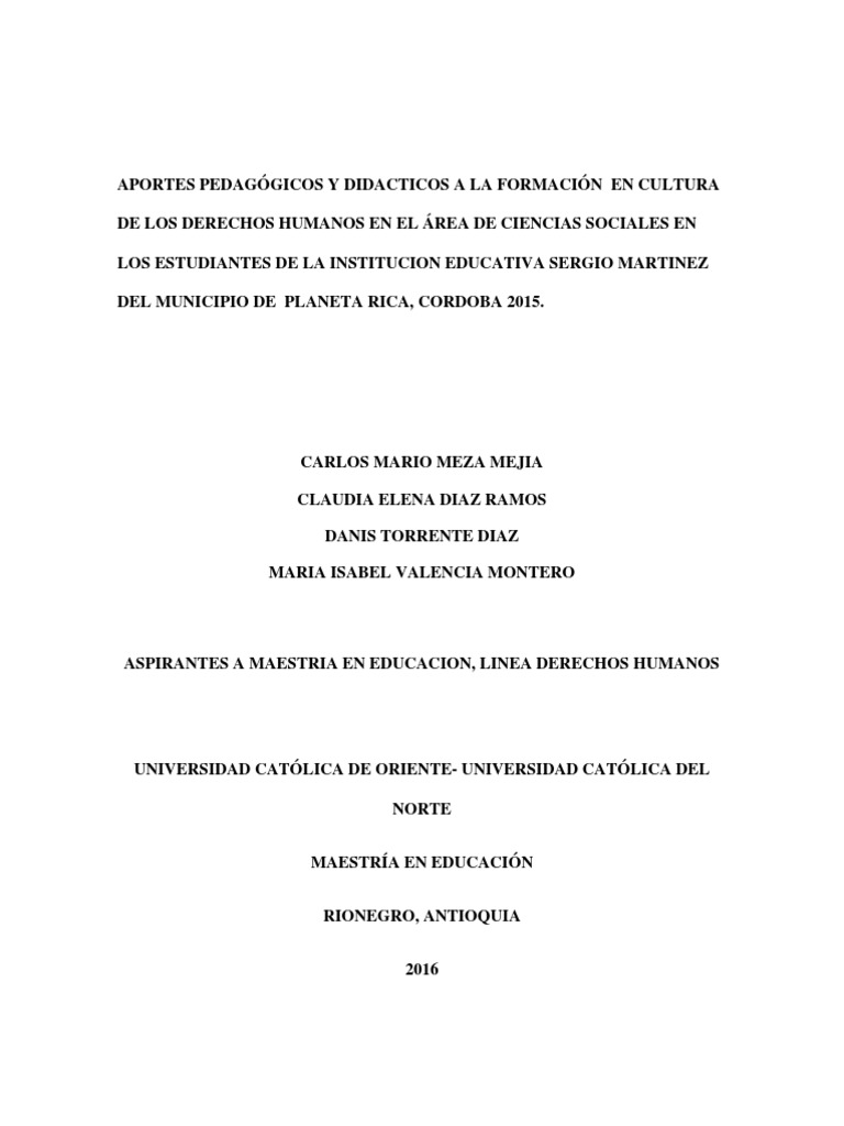 Derechos Humanos en la Institucin Educativa Sergio Martnez de Centro Alegre, Planeta Rica,