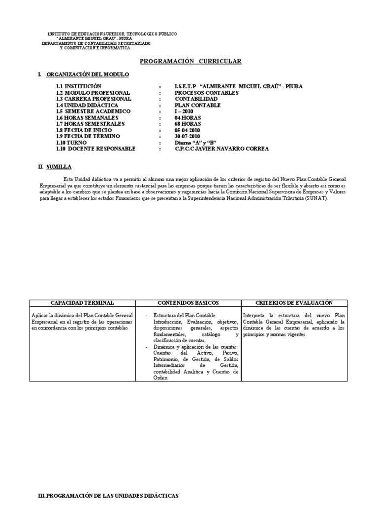 3.1 UNIDAD DIDÁCTICA Nº 01: Evolución y Contenido del Nuevo Plan Contable General Empresarial.