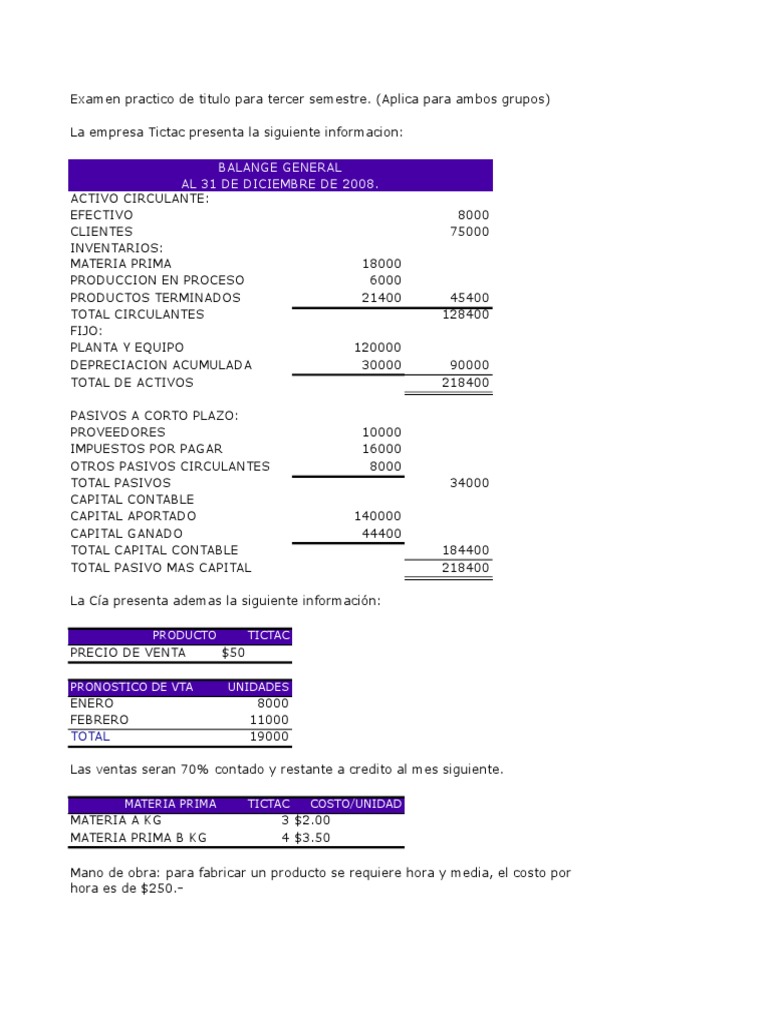 La empresa Tictac presenta la siguiente informacion: