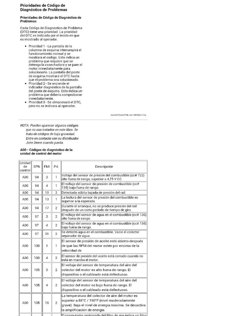 ‘cada Cédigo de Diagnéstico de Problema