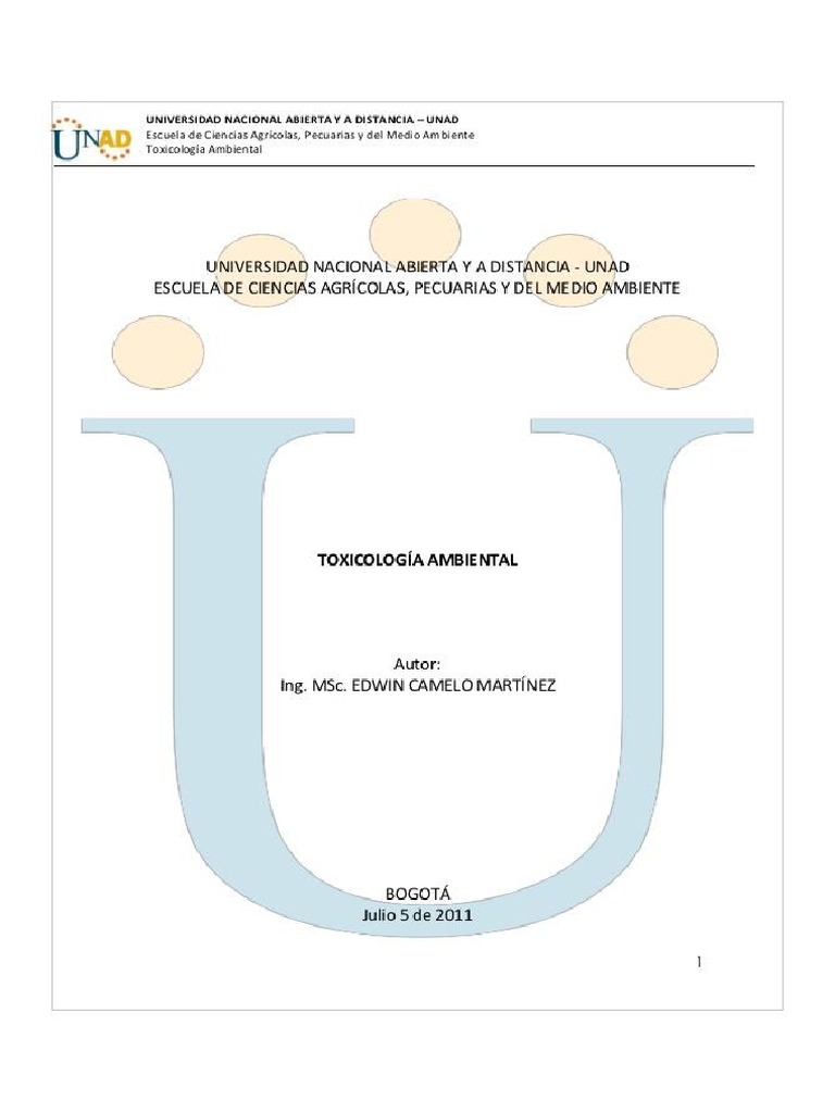 UNIDAD 1. FUNDAMENTOS DE TOXICOLOGIA AMBIENTAL..