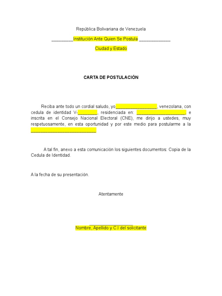 Reciba ante todo un cordial saludo, yo_________________, venezolana, con