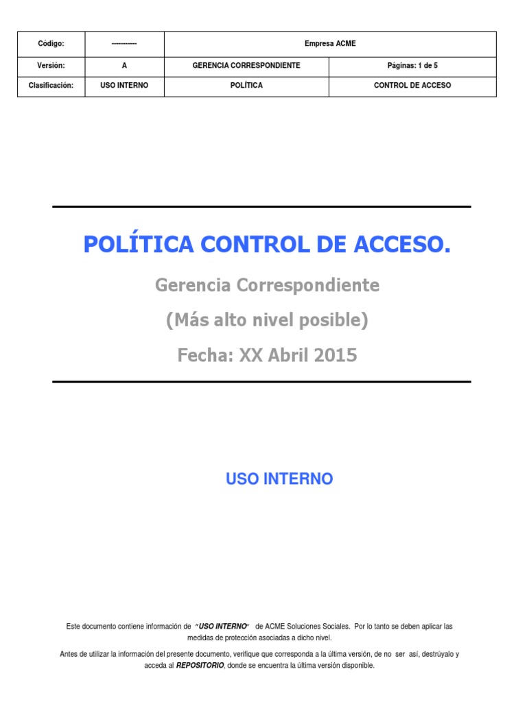 Este documento contiene informacin USO INTERNO de ACME Soluciones Sociales. por lo tanto se deben aplicar las medidas