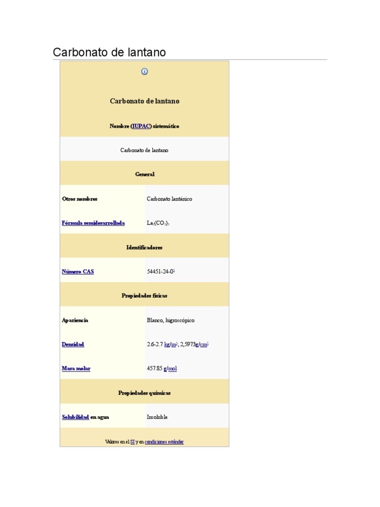 El carbonato de lantano es la sal formada por el catin de lantano (III) y el anin de carbonato. Es