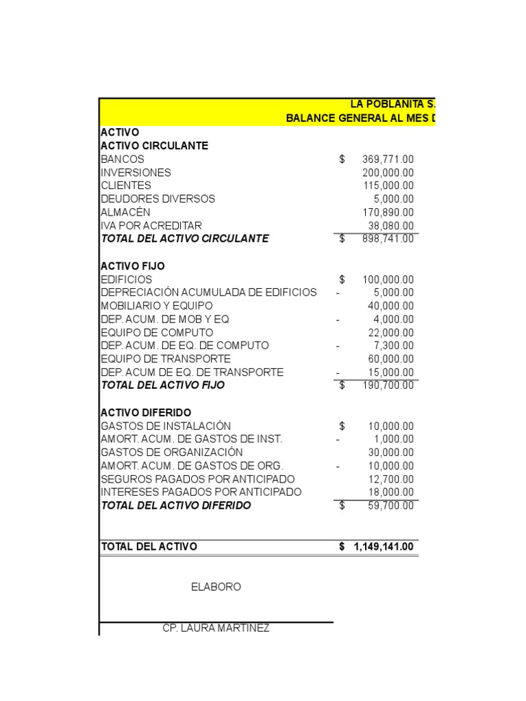 BALANCE GENERAL AL MES DE DICIEMBRE DE