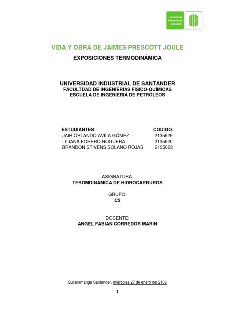 se entiende como fsica y qumica) y quien en propias palabras de Joule: me