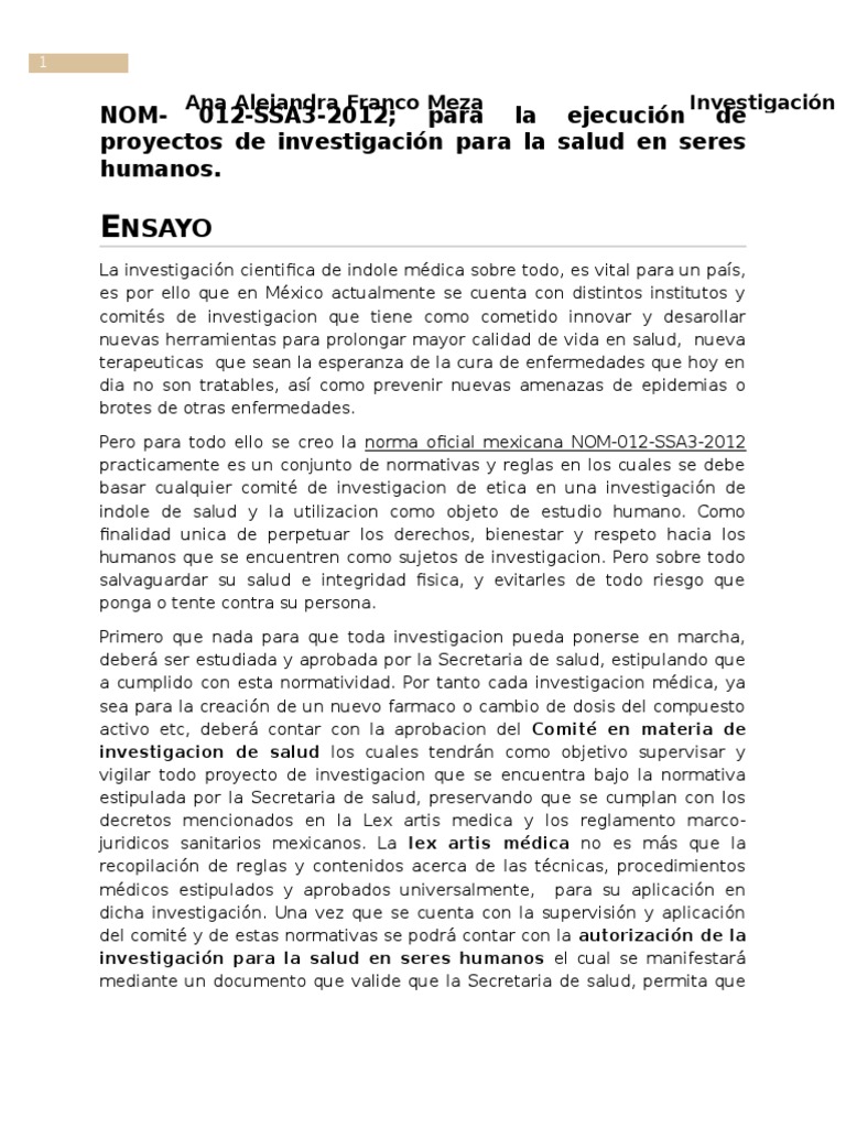 NOM- 012-SSA3-2012; para la ejecucin de