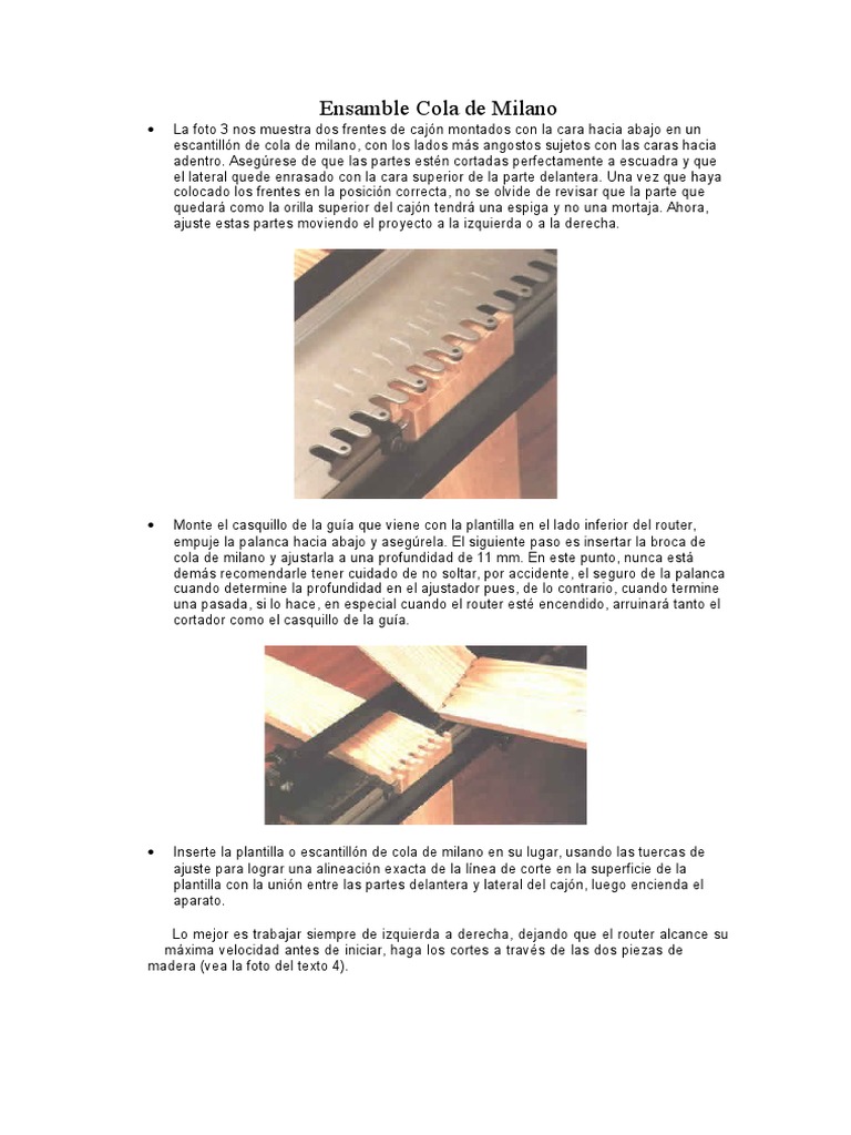 transversales entre la cola de milano con una sierra caladora. Finalmente debe