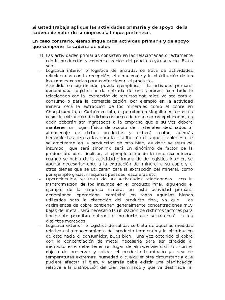En caso contrario, ejemplifique cada actividad primaria y de apoyo