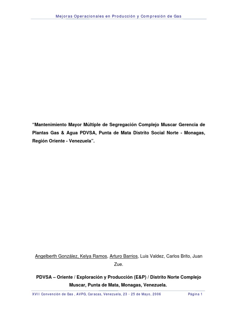 Manejo de Gas y Agua PDVSA, Punta de Mata Distrito Norte Monagas, regin