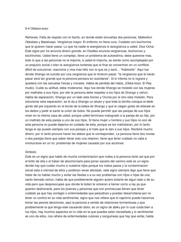 adivinacin para la mujer que tena seis hijos. EBARA GOSUN GOSUN, OSHOWO UDO