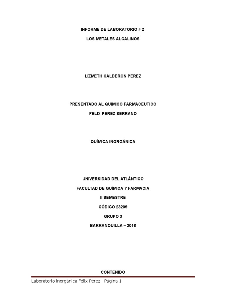 Este informe est estructurado en el tema de los metales alcalinos. Los metales alcalinos