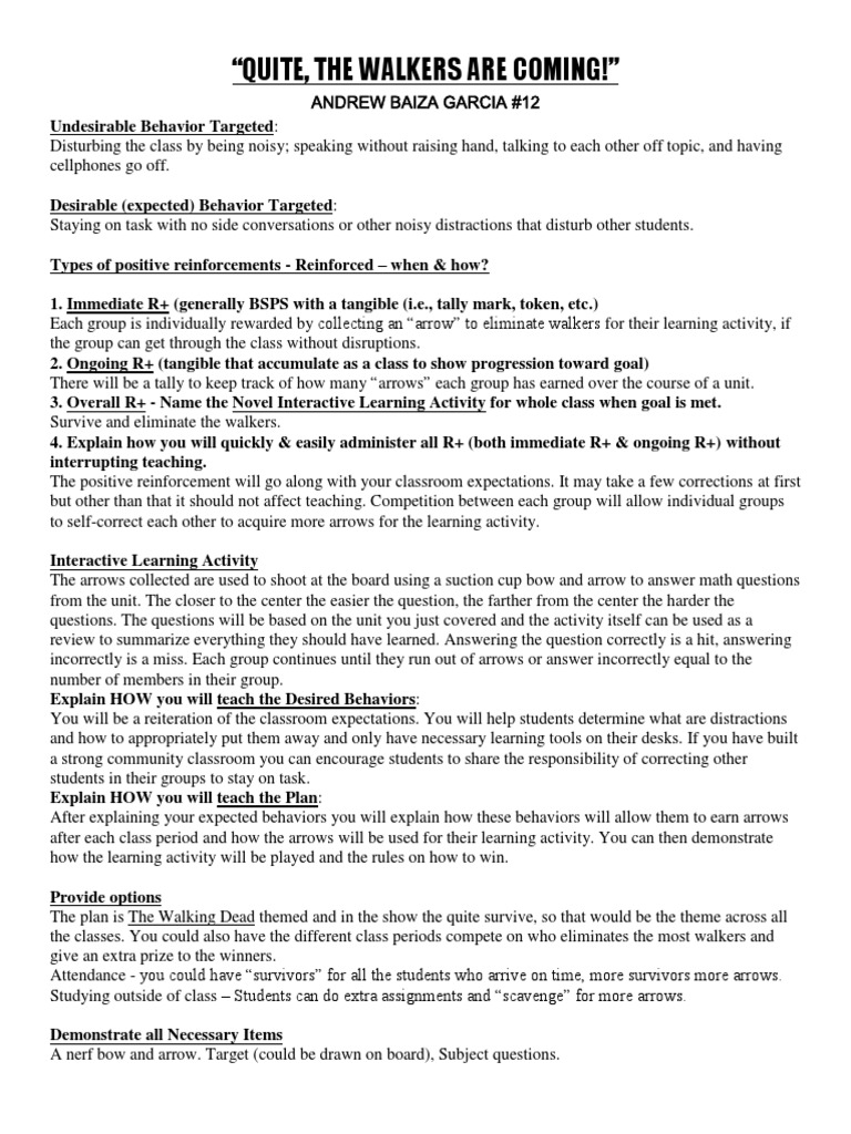 You will be a reiteration of the classroom expectations. You will help students determine what are distractions