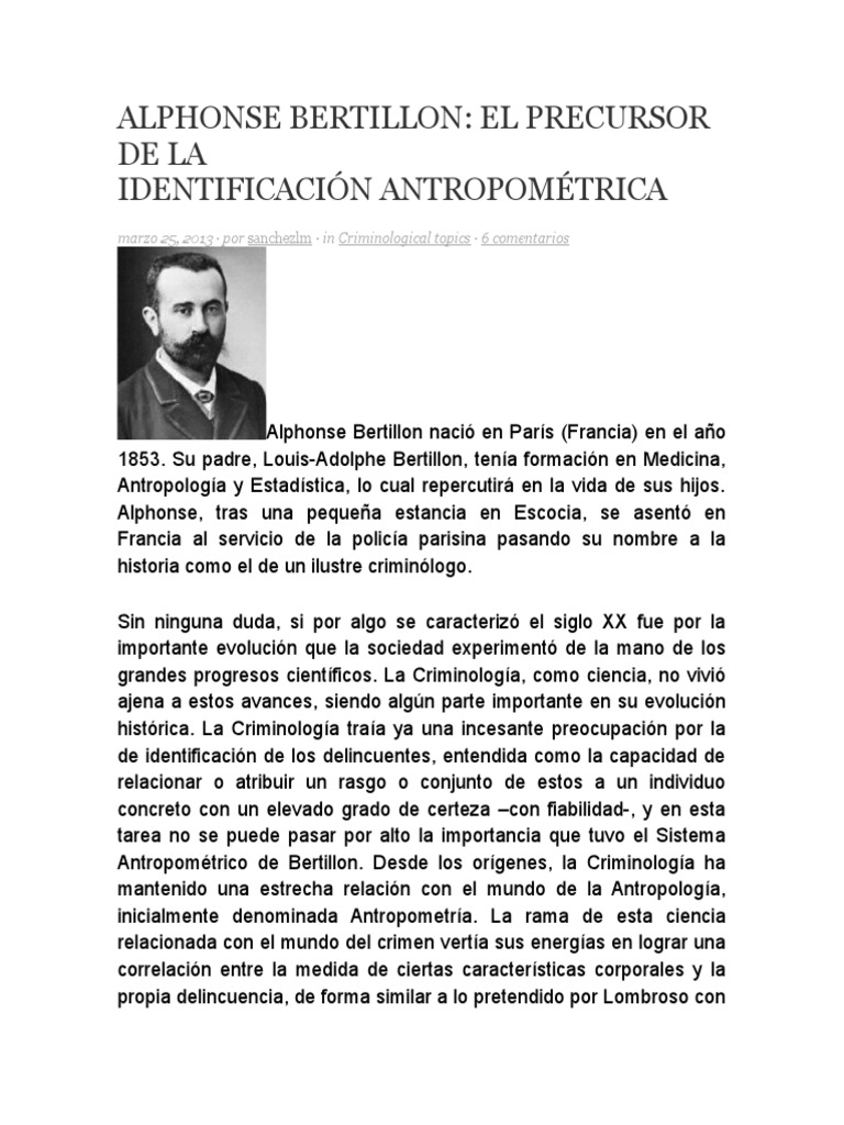 Antropomtrico de Bertillon. Desde los orgenes, la Criminologa ha