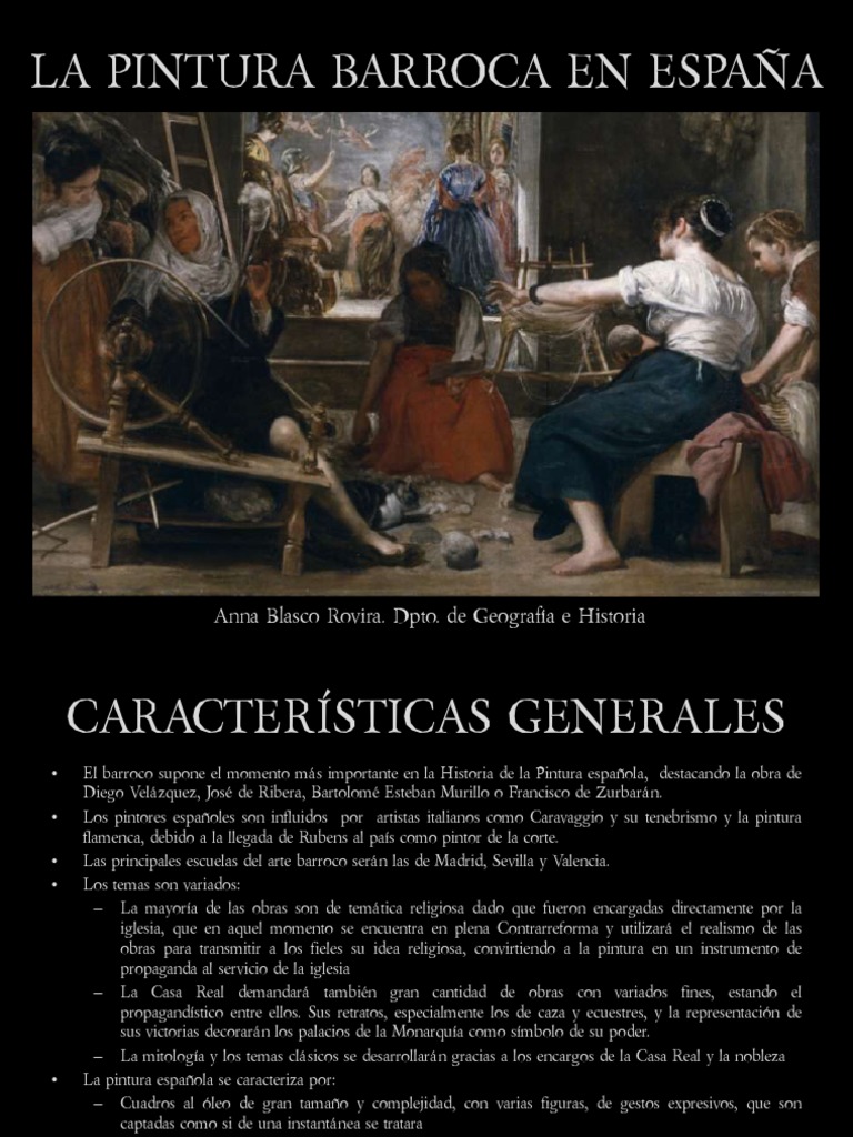 El barroco supone el momento ms importante en la Historia de la Pintura espaola, destacando la obra de