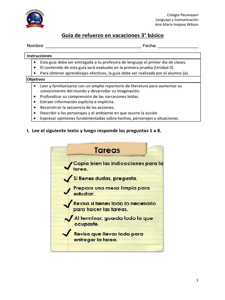 Esta gua debe ser entregada a tu profesora de lenguaje el primer da de clases.