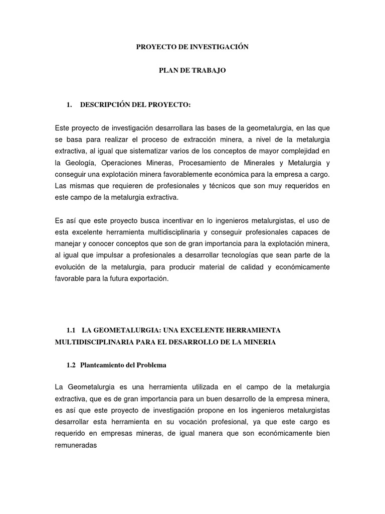 Este proyecto de investigacin desarrollara las bases de la geometalurgia, en las que