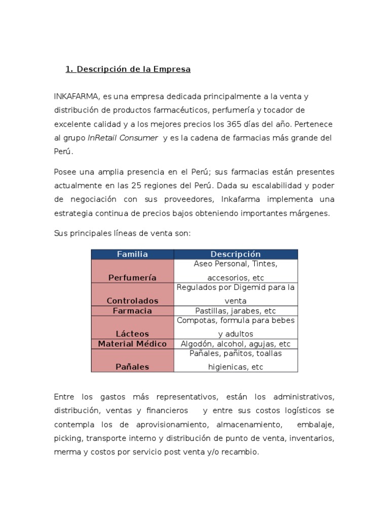 INKAFARMA, es una empresa dedicada principalmente a la venta y