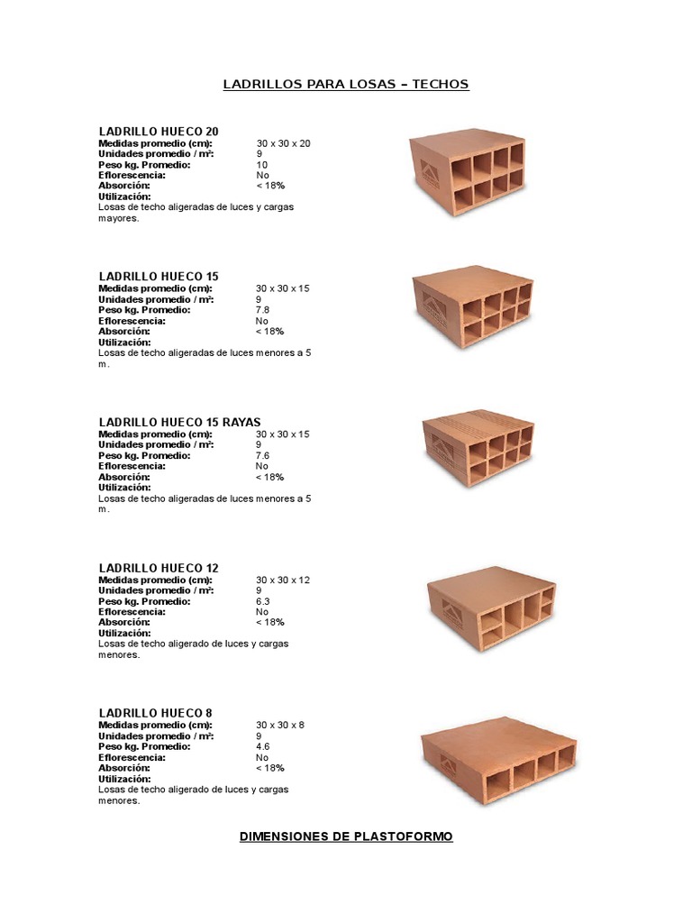 Peso de ladrillo de arcilla para techo= 8 kgs.