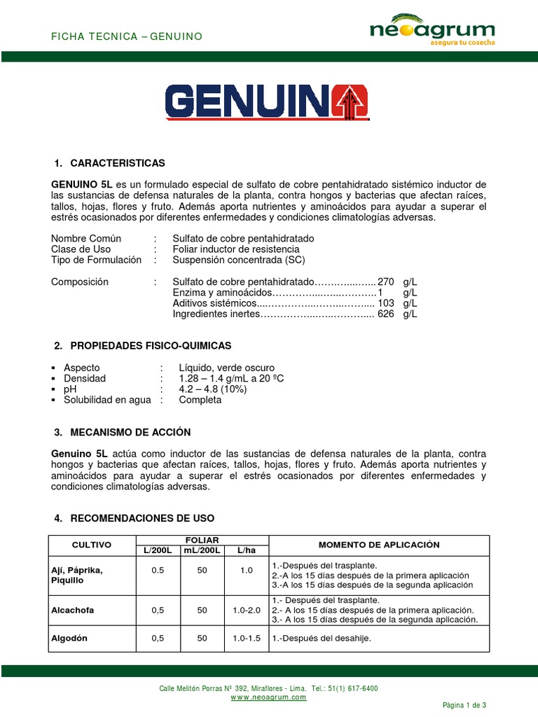 GENUINO 5L es un formulado especial de sulfato de cobre pentahidratado sistmico inductor de