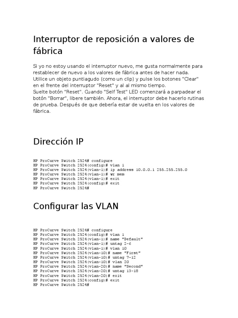 [Nota] Esta configuracin se realiza con HP ProCurve 2524 (J4813A), pero la