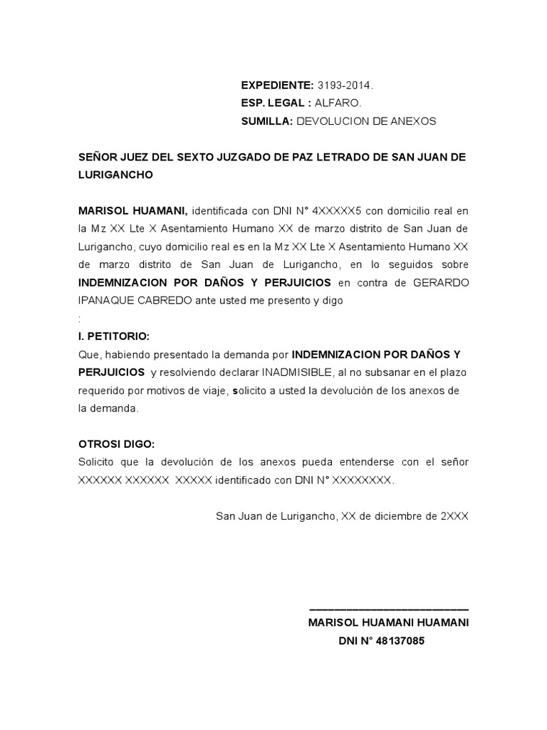 Solicito que la devolucin de los anexos pueda entenderse con el seor