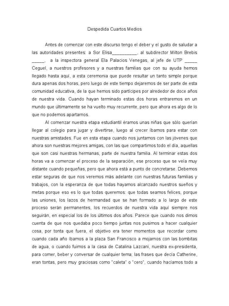 Despedida Cuartos Medios