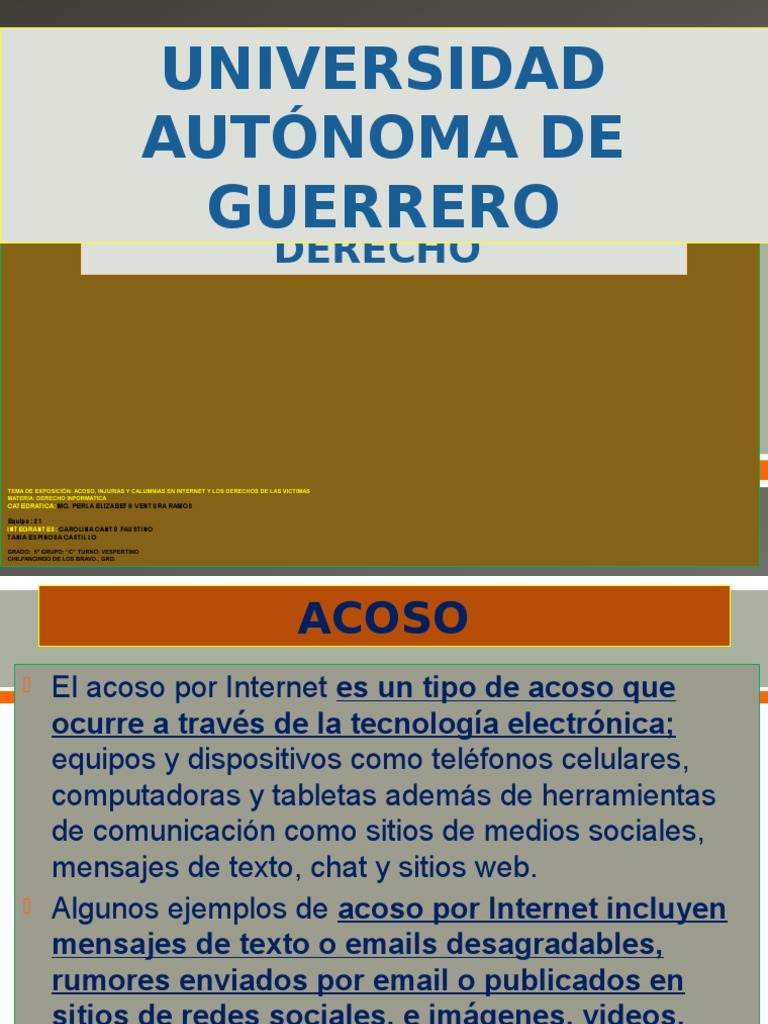 TEMA DE EXPOSICIN: ACOSO, INJURIAS Y CALUMNIAS EN INTERNET Y LOS DERECHOS DE LAS VICTIMAS