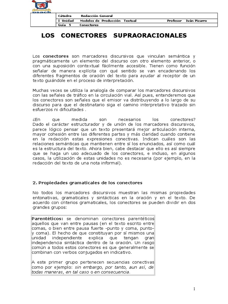 2. Propiedades gramaticales de los conectores
