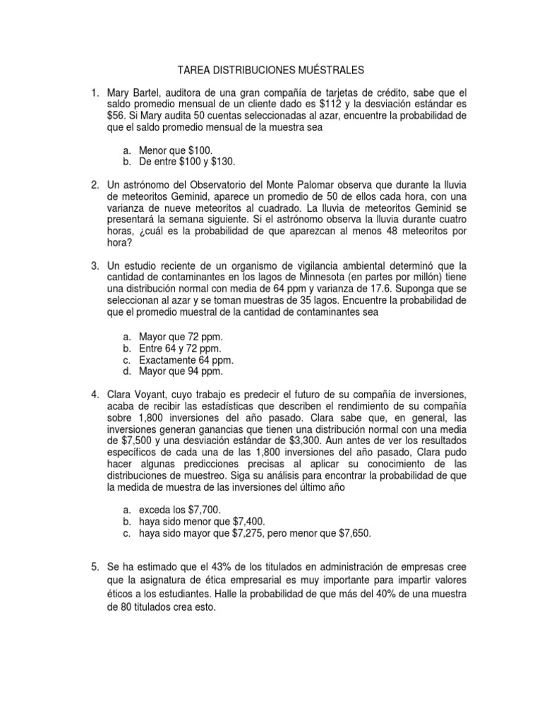 distribuciones de muestreo. Siga su anlisis para encontrar la probabilidad de que