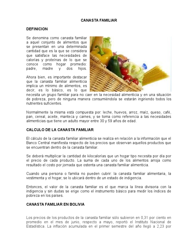 CANASTA FAMILIAR EN BOLIVIA