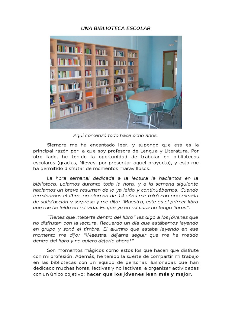 biblioteca. Leamos durante toda la hora, y a la semana siguiente