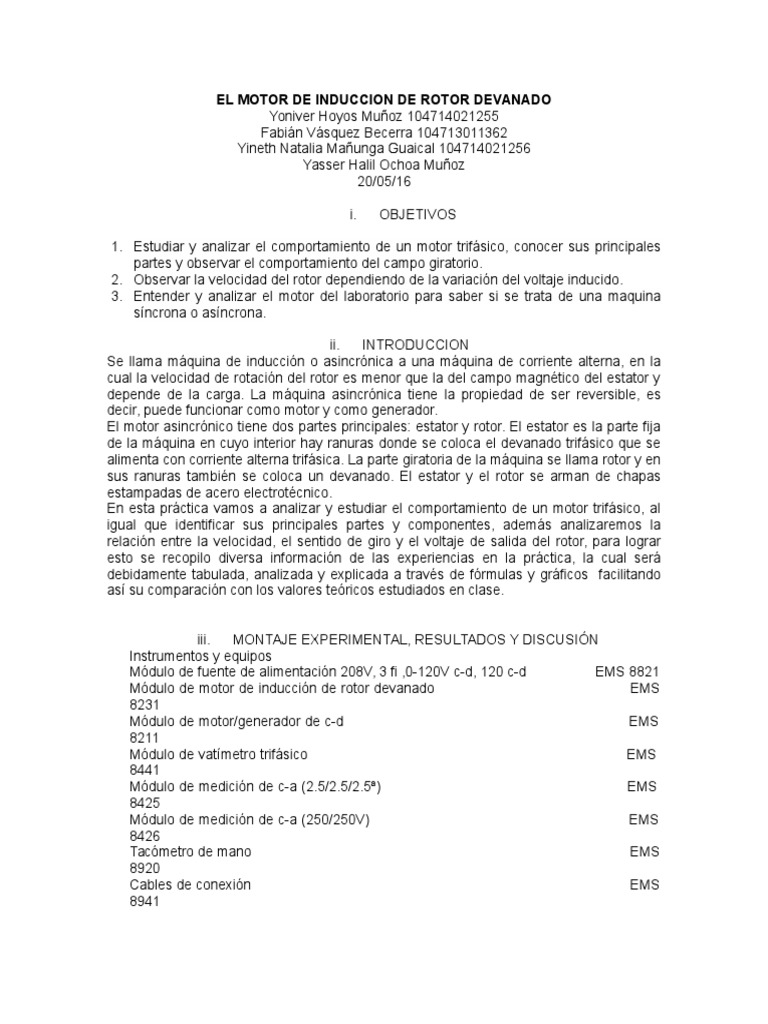 1. Estudiar y analizar el comportamiento de un motor trifsico, conocer sus principales