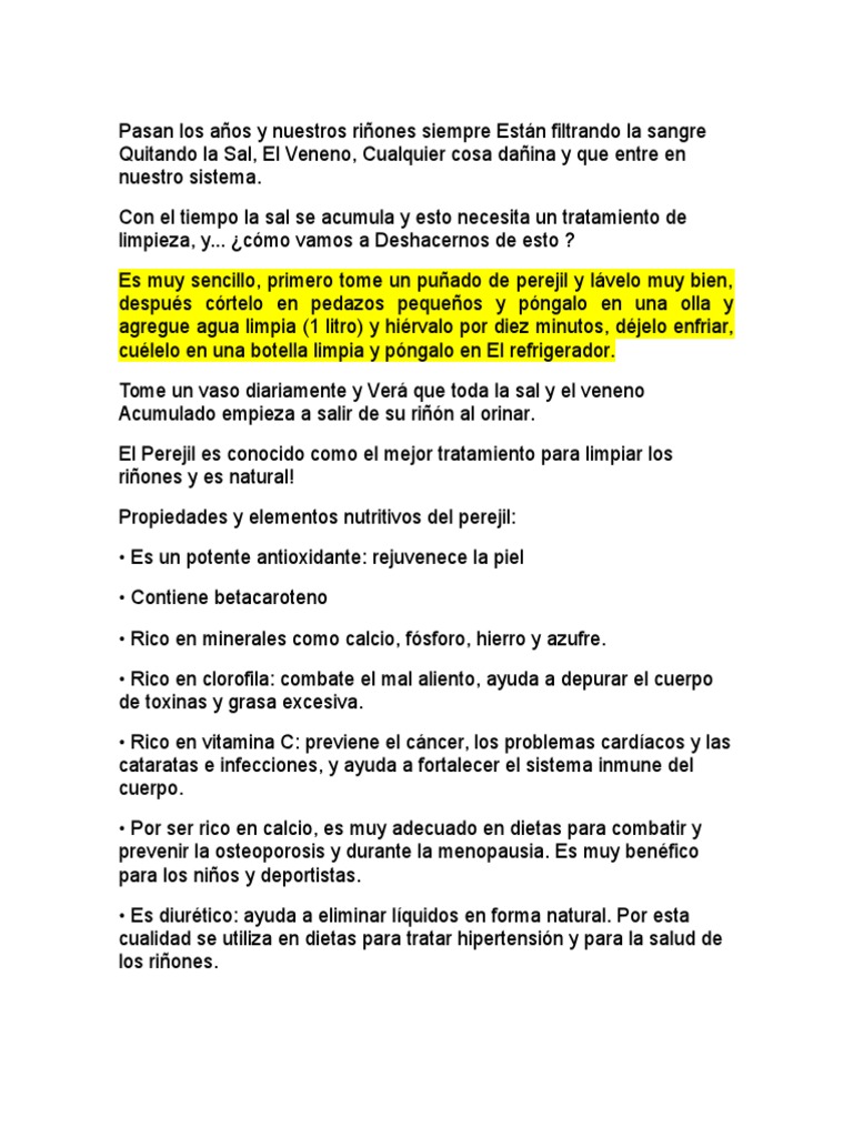 El Perejil es conocido como el mejor tratamiento para limpiar los