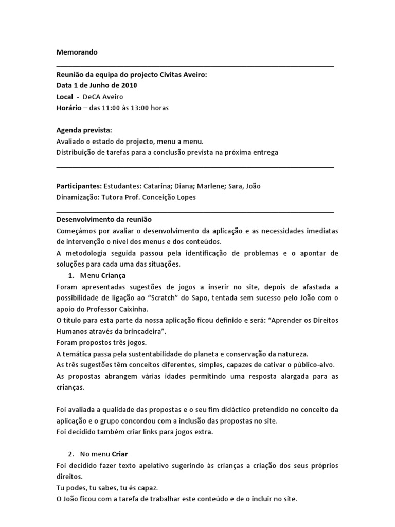 O João ficou com a tarefa de trabalhar este conteúdo e de o incluir no site.