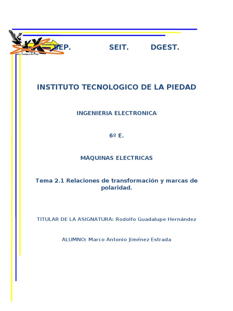 Por ejemplo el transformador mostrado en la figura 1.1 tiene