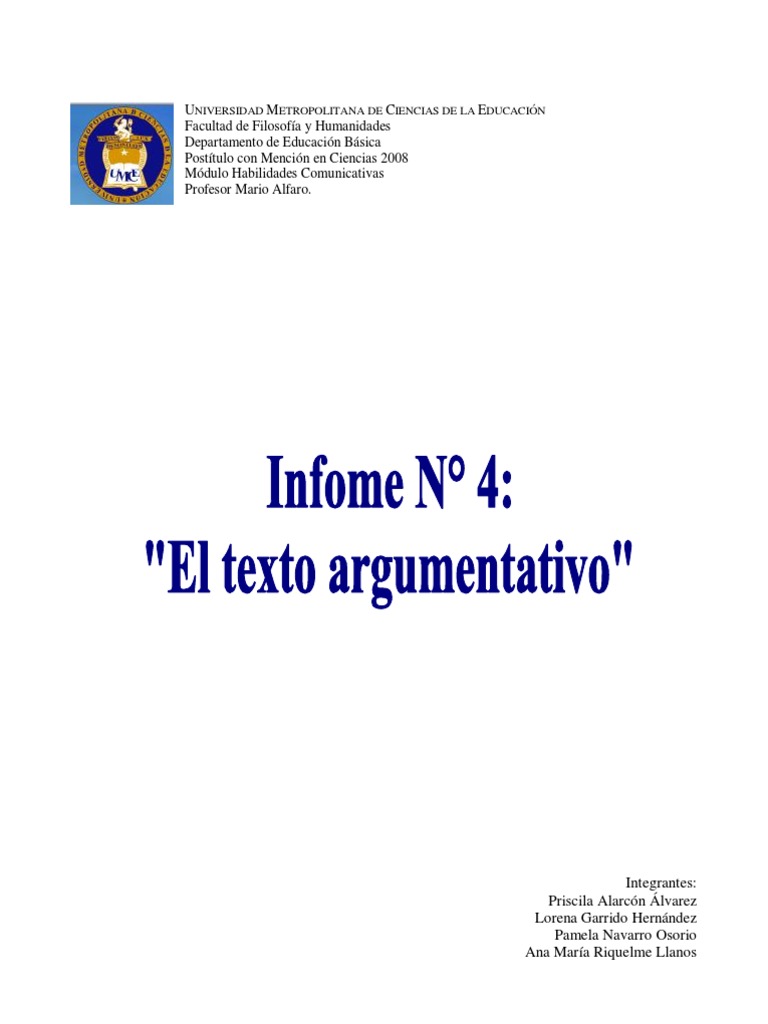 características descritas en el informe anterior) pertenece al grupo del texto argumentativo, pues para