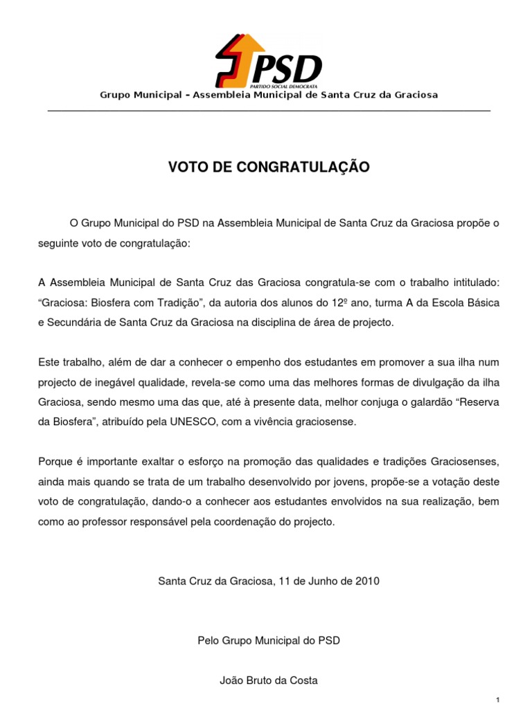 Pelo Grupo Municipal do PSD