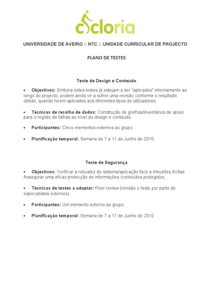 • Técnicas de testes a adoptar: Peer review (revisão e teste por parte de