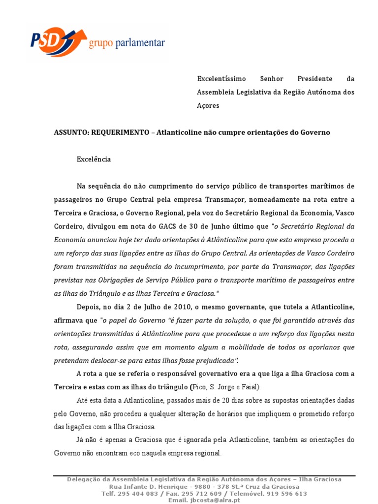 Já não é apenas a Graciosa que é ignorada pela Atlanticoline, também as orientações do