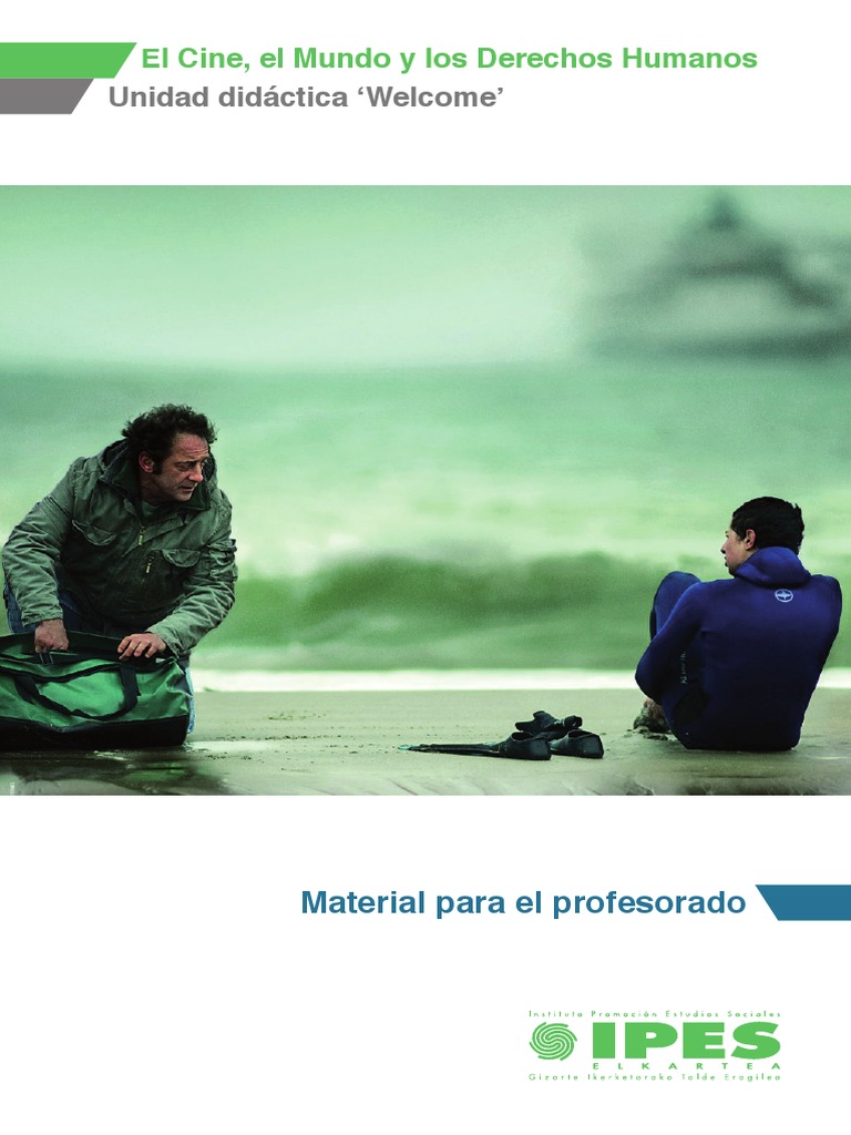 "El Cine, el Mundo y los Derechos Humanos" es una colección de unidades didácticas orientadas al trabajo con cine en materia de Derechos Humanos en las escuelas (nivel de secundaria). Esta unidad propone el análisis de la película "Welcome". El cuadernillo que mostramos a continuación responde al material de apoyo del profesorado para el desarrollo de la actividad. La unidad se completa con un segundo cuadernillo de actividades para el alumnado. En ambos casos, los materiales se acompañan de dos DVD con fragmentos audiovisuales. Para acceder a ellos, te puedes poner en contacto con nosotros a través del correo electrónico.