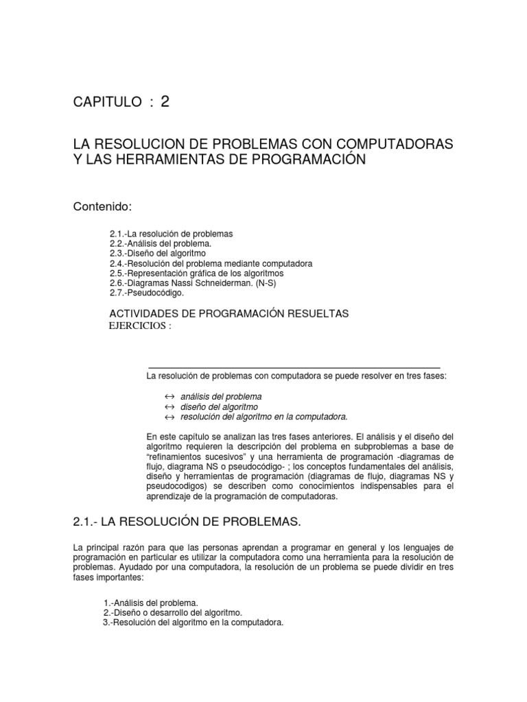 problemas. Ayudado por una computadora, la resolución de un problema se puede dividir en tres