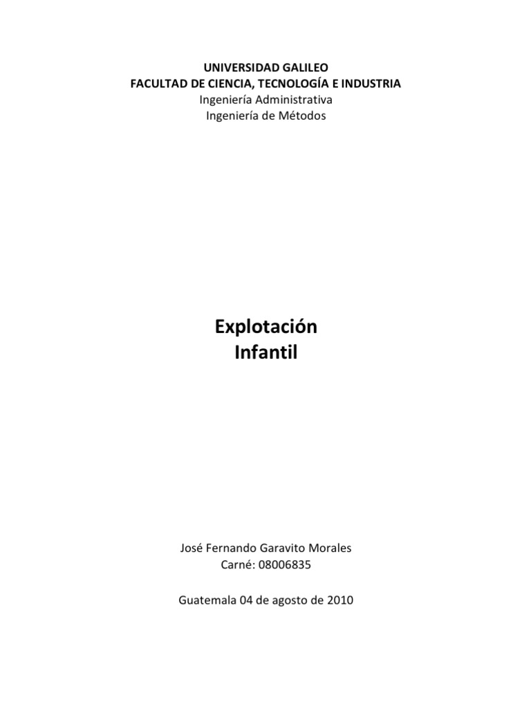 tipo de explotación laboral. Existen 1,03 millones de niños trabajadores de Guatemala, solo